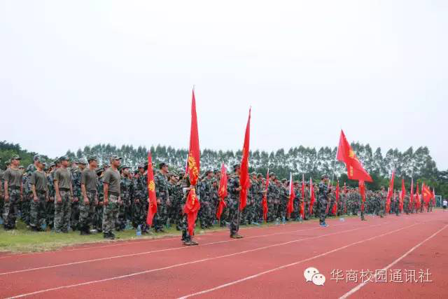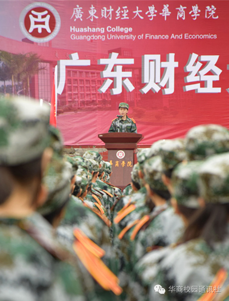 2016年9月20日上午8点,广东财经大学华商学院田径运动场被军绿色的整齐方块布满,微风轻拂,红旗飘飘。我院2016级新生军训动员大会在田径运动场隆重举行。大会由王锦秀副院长主持。出席大会的领导嘉宾有华商学院党委书记苏宁,军训团叶计选团长,支戈壁副院长、马玉珍副院长、杨丽娟副院长、以及各二级学院主任与职能部门负责人等