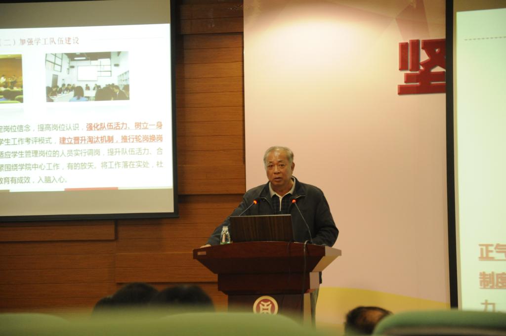 王锦秀副院长作了《坚持教育、管理、服务三到位,促进学生工作全面发展》的主题报告。王副院长从工作回顾、存在问题、努力方向三个方面对学院的学生工作进行了汇报,报告内容详实、全面。
