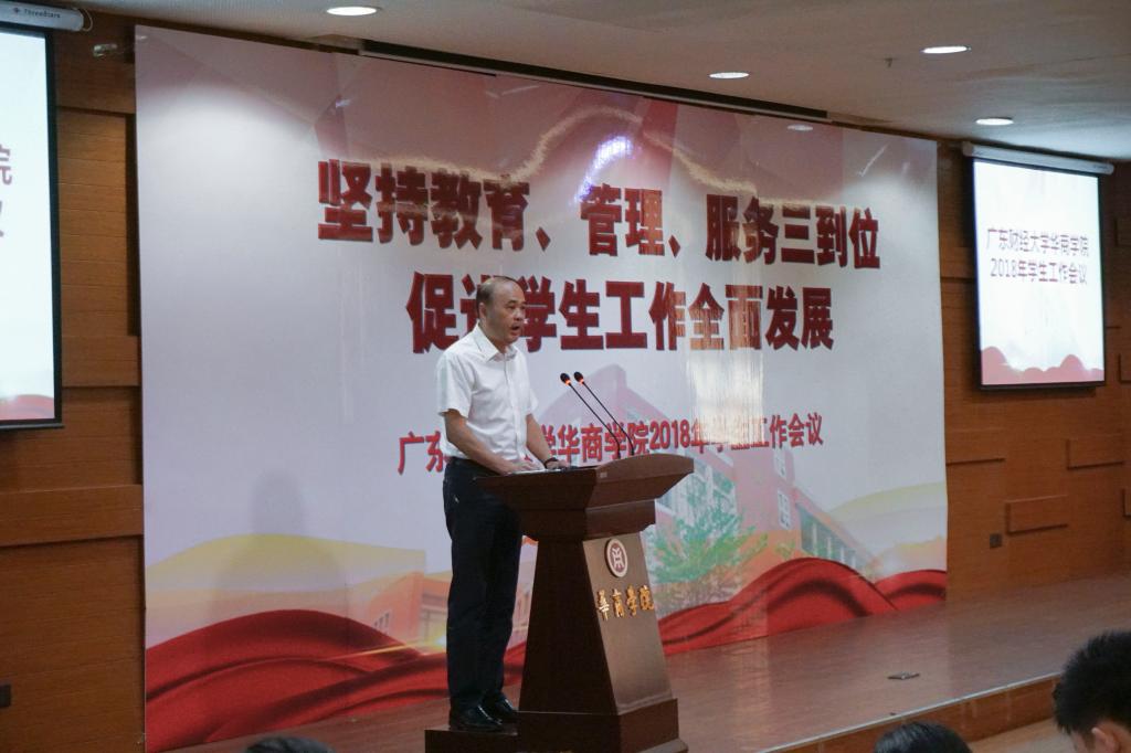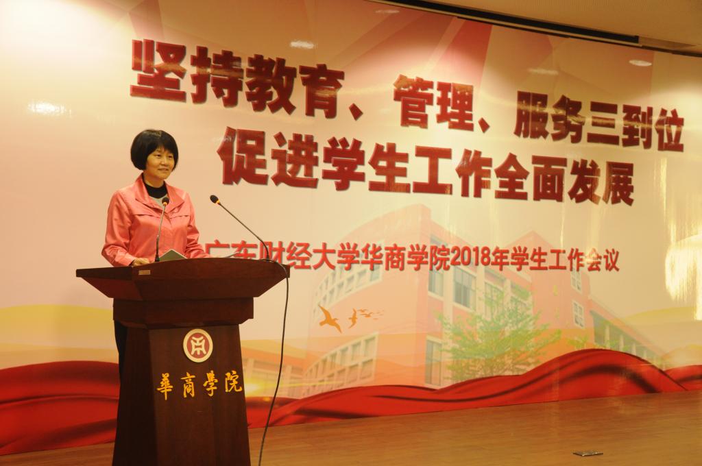 3月20日,我院在图书馆报告厅召开了广东财经大学华商学院2018年学生工作会议,本次会议由苏宁书记主持。出席本次会议的有陈玉川院长、支戈壁副院长、郭银华副院长、龙少锋副院长、王列耀副院长、王锦秀副院长、杨丽娟副院长以及学院中层干部、党办、学生处、招生办、就业办、团委全体人员;全体辅导员及教师代表,学生代表。