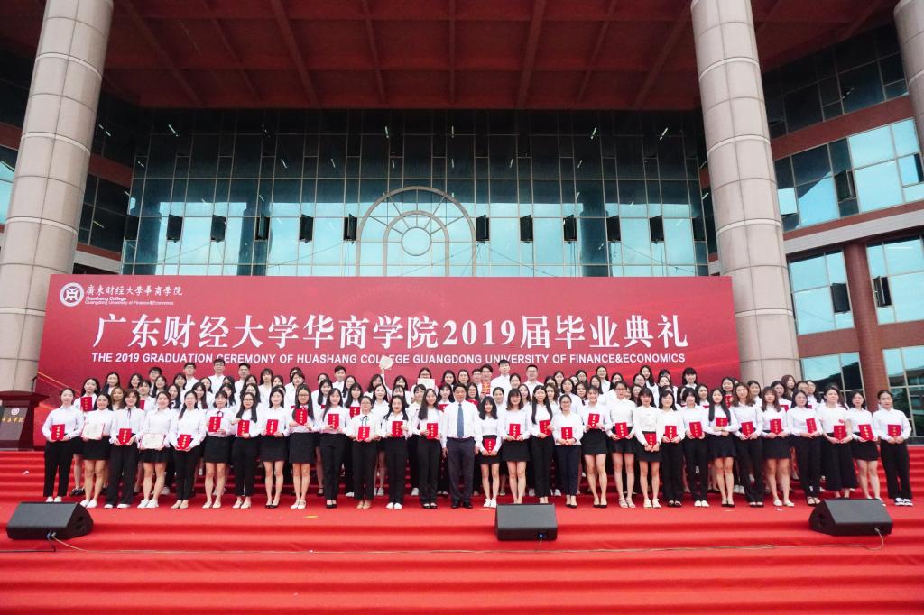 广东财经大学华商学院党委苏宁书记宣读《广东财经大学华商学院关于表彰2019届优秀毕业生的决定》。接着,领导们为2019届毕业生代表颁发毕业证书,为2019届优秀毕业生颁奖。