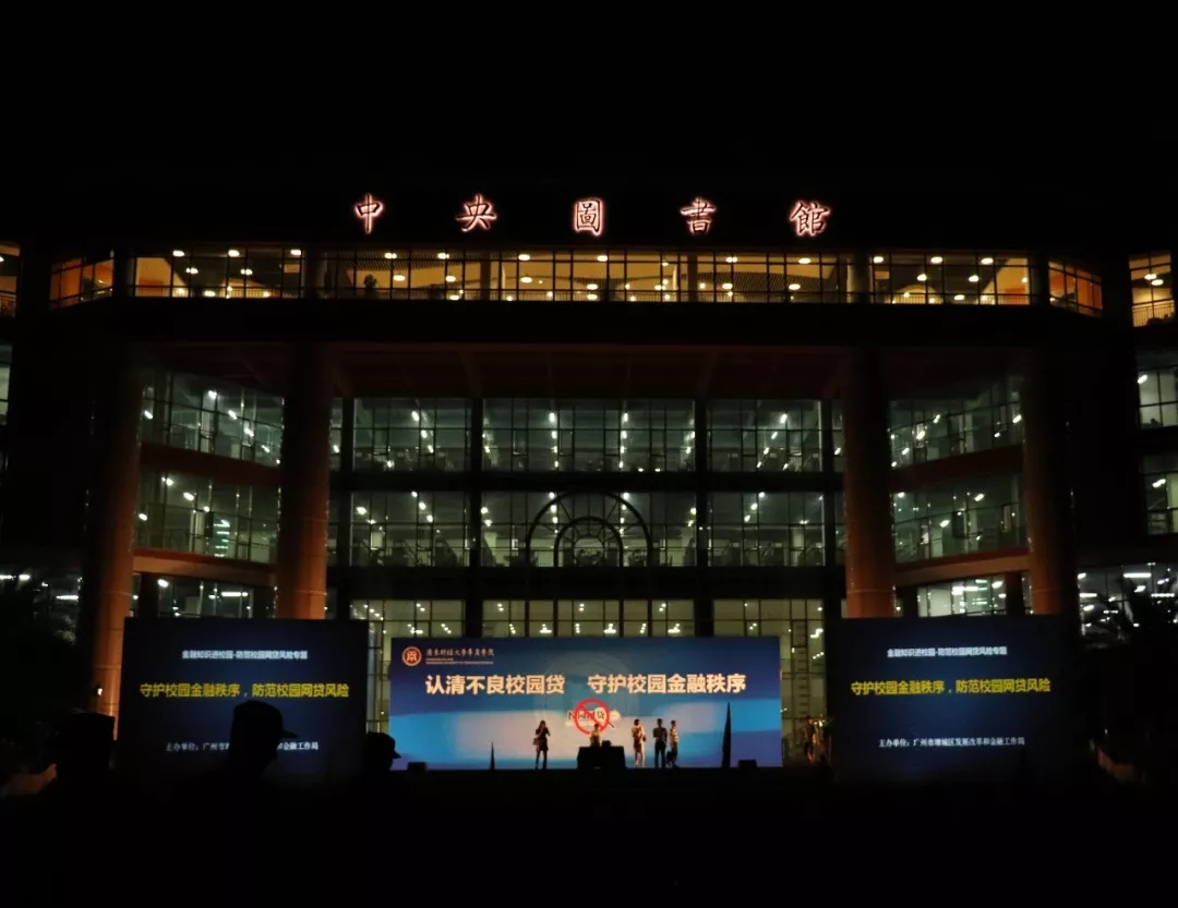 2019年9月24日星期二晚19:00,我校邀请了中国工商银行广州增城支行吴洋行长在图书馆广场给19级新生进行“守护校园金融秩序,防范校园网贷风险”专题讲座。