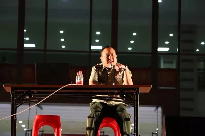 接着,郑教授又详细地为大家讲解了中国人民解放军的常识,中国人民解放军共分为四个军种:陆军、海军、空军和火箭军。还对在座的19级新生提出希望,要认真军训,努力成为一名合格后备军;要热爱国家,保卫国家。