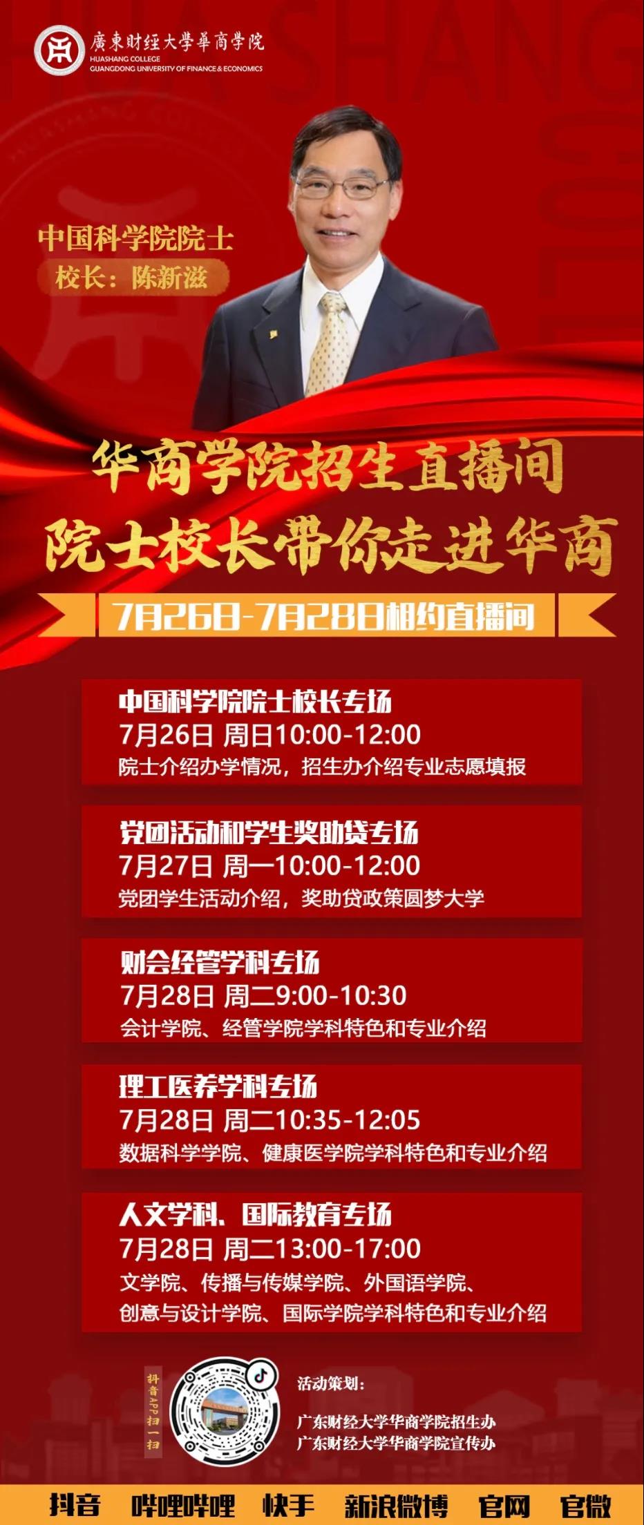 将通过四大直播平台进行招生直播