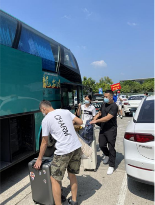 老师和志愿者们早早出发到各车站点等候新同学们的到来。