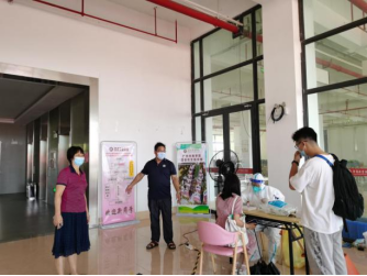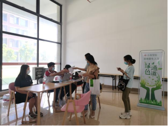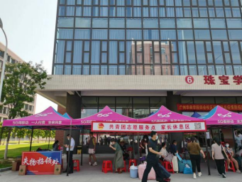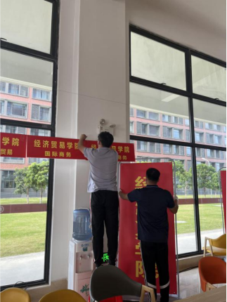 9月2日,四会校区各部门精心准备迎新场地的布置