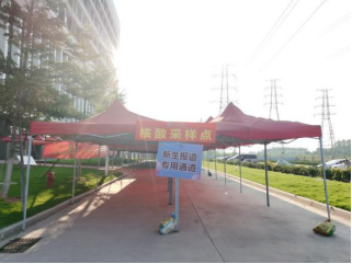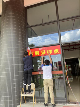 校门口搭建帐篷设置已缴费与未缴费报到入校通道、在6号楼一楼设置核酸检测采样通道