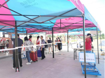 此外,在6号楼门外空地搭建帐篷供家长休息,与学生行李临时存放点。