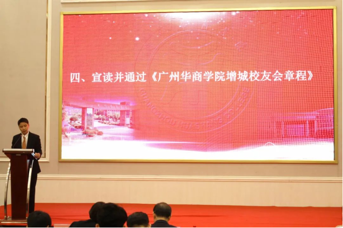 经大会主持李旭伟宣读,大会审议并通过了《广州华商学院增城校友会章程》。