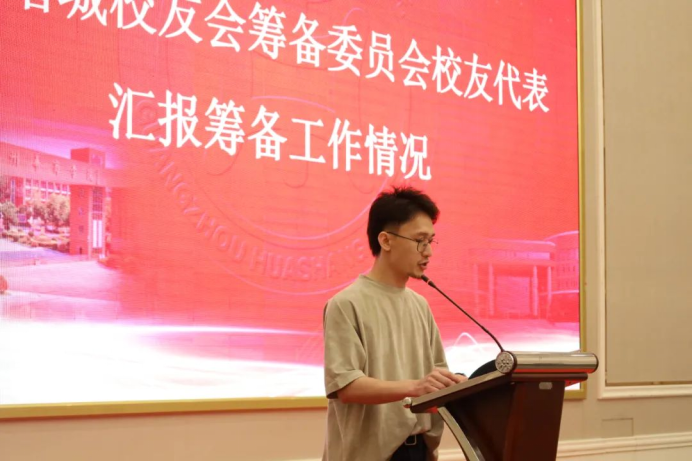 华商增城校友会筹备委员会校友代表胡世柯向大会汇报了大会筹备工作情况。