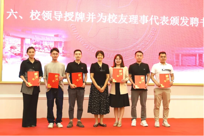 通过《章程》草案和第一届理事建议名单后,由执行校长郭银华向广州华商学院增城校友会授牌。