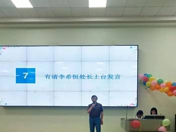 所有的参赛宿舍视频观看完毕后,大会已经过半。我们请到了我们的李希恒处长为我们上台讲话。李希恒处长对入选终评的参赛宿舍表示了祝贺,也分享了他对宿舍的一些看法。