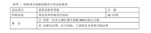⑤参加学校及学校以上的单位组织的科技或学术文化节(周)以及经学校有关部门审核认定的其他活动或项目并获奖的学生,以所获得的各类竞赛、各类奖励等级为依据,参照《各类竞赛活动创新实践(社会实践)学分评定标准表》(附件一)、《公开发表的作品创新实践(社会实践)学分评定标准表》(附件三)、《科技成果和发明创造创新实践(社会实践)学分评定标准表》(附件四)的要求申报创新实践(社会实践)学分分值。