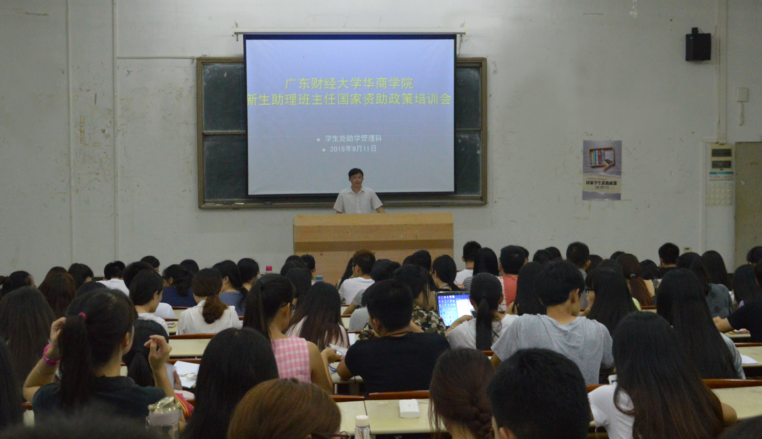 为了响应教育部财政部下发的《教材[2015]8号教育部财政部关于进一步加强学生资助政策宣传工作的通知》并帮助我院家庭经济困难新生准确了解国家资助政策以及掌握国家资助申请流程,同时向广大新生介绍助学管理科的工作。9月11日下午,广东财经大学华商学院学生处助学管理科在励志楼B207课室举办了2015年新生助理班主任国家资助政策培训会,各二级院系148名新生助理班主任出席了本次培训会。