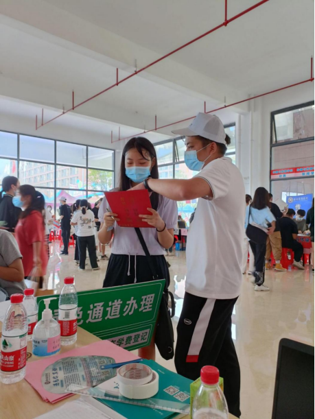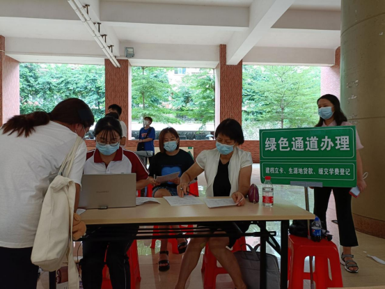 9月1日和9月11日-12日分别是2021级专插本学生和2021级新生报到入学的日子,在华商学院增城本部和四会校区的校园内,绿色白底的“绿色通道”在各类指示牌中分外显眼,这是学生处助学管理科按照国家政策为我校家庭经济困难学生办理“绿色通道”。现场办公的有主管学生工作王副校长、学生处许处长,黄副处长以及勤工助学服务社学生、贷款学生助理等。