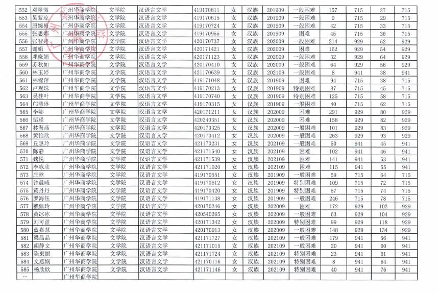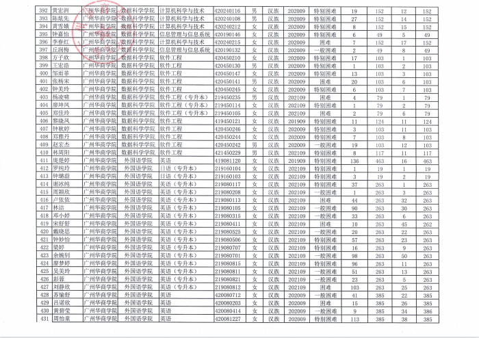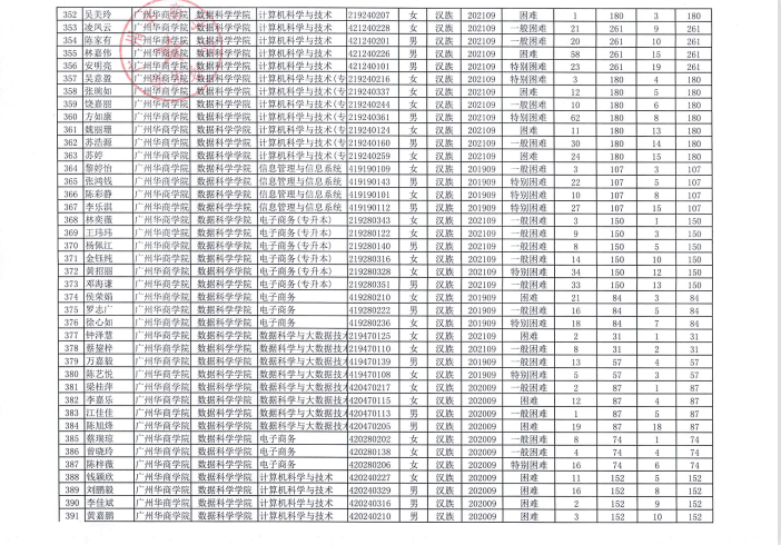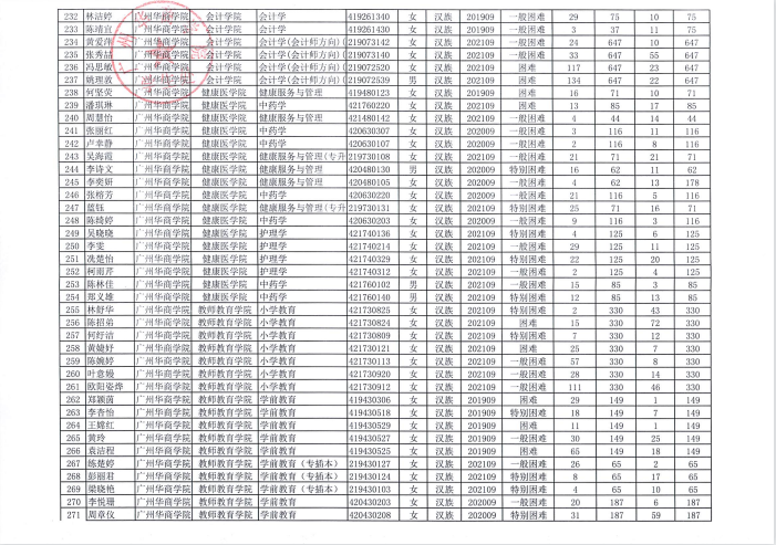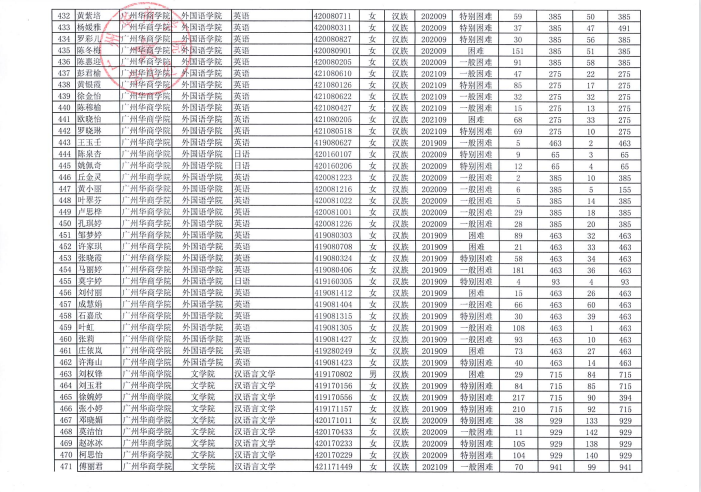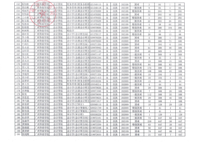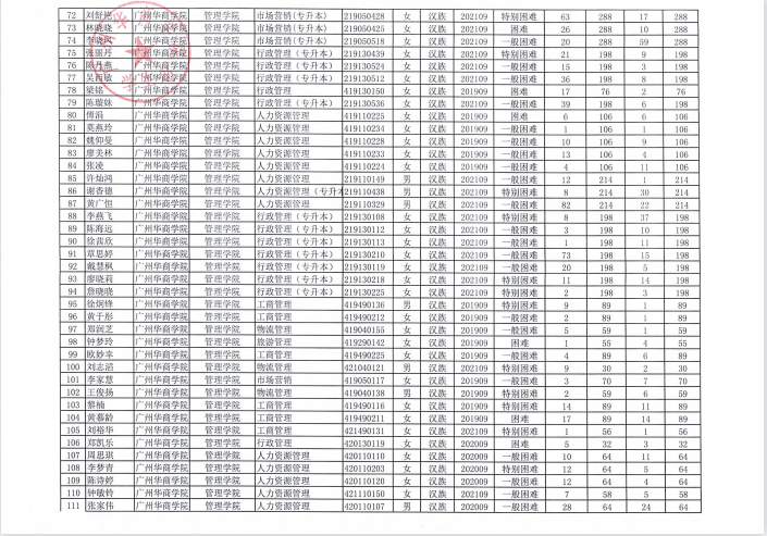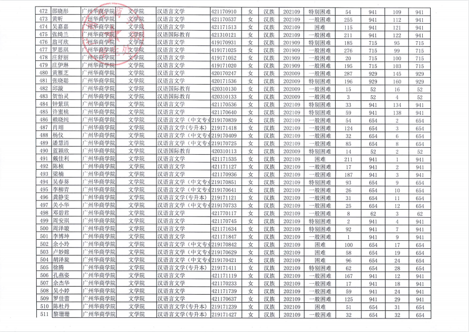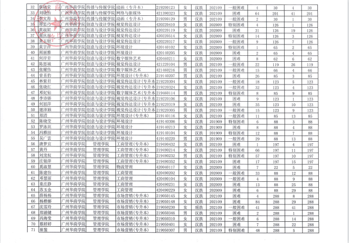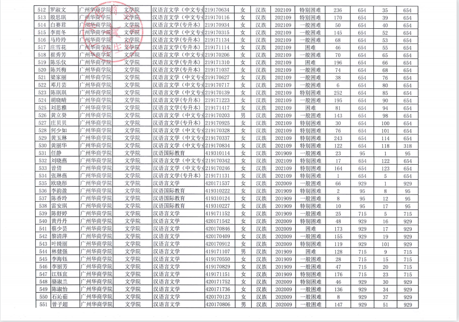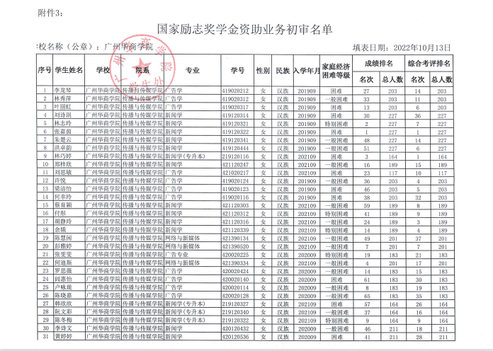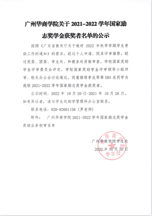 广州华商学院关于2021-2022学年国家励志奖学金获奖者名单的公示