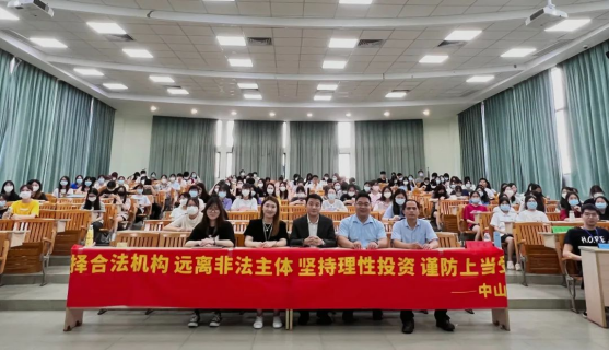 为增强学生金融防范意识,提高学生的金融知识水平,加强学生防范非法证券期货活动和防诈骗意识,我校于6月14日在励志楼A408邀请了中山证券公司的人员为同学们开展普及金融知识,增强金融反诈及风险防范能力主题讲座,本次讲座嘉宾为学生处副处长黄国富,人文学部副主任、外国语学院副院长陈少鸿主任,中山证券经纪业务管理总部、衍生品业务负责人吴晓鸿,中山证券经纪业务管理总部经理吴茵、方思思等。