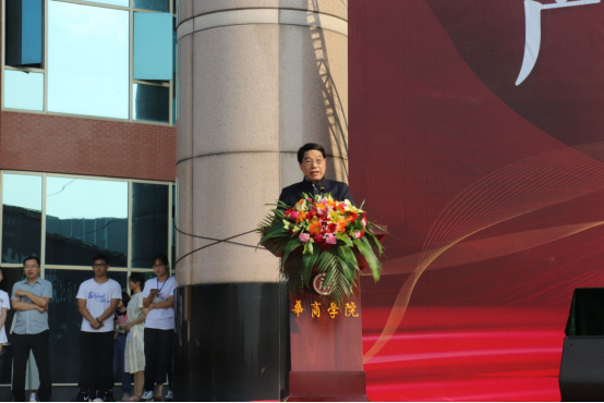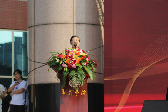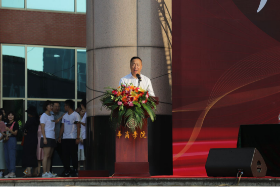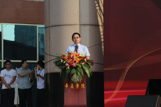 大会第四项,由广东财经大学华商学院校长陈新滋院士致词。陈校长提出,学校以办特色教育为主线,以教学质量为重点,以改革创新为动力,致力于培养人才。学院坚持依法办学,规范办学,为学生成长提供良好环境。陈校长提出,在大学四年里面,同学们不仅要学好专业知识,更要突破个人内涵,实现人生价值和梦想,养成两个良好的习惯,一个是终生锻炼的习惯,一个是终生阅读的习惯。