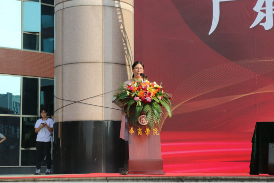 广东财经大学华商学院廖榕就董事长、广东财经大学华商学院校长陈新滋院士、广东财经大学副校长邹新月教授、广东财经大学华商学院常务副校长郭银华教授、党委苏宁书记、副校长支戈壁副教授、王列耀教授、王锦秀女士、张捷教授、陈美华教授、程辛荣高级政工师、王力东副研究员、钟森文副校长等嘉宾出席了本次典礼。本次典礼由王锦秀副校长主持。