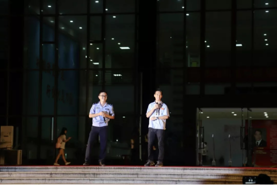 2019年9月10日晚七点整,2019级新生安全知识宣讲会在华商学院中央图书馆门口隆重举行。