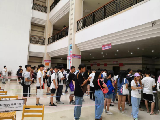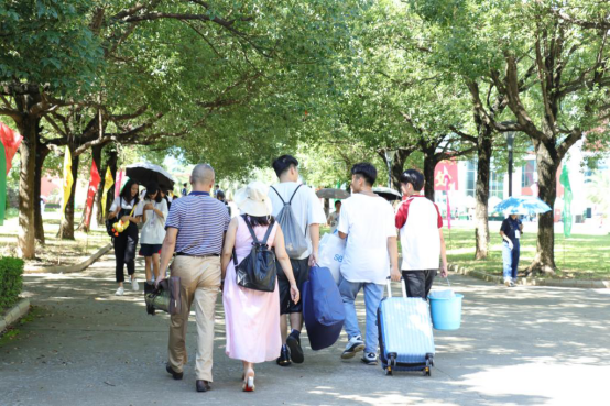 在烈日骄阳下,工作人员和志愿者毫不懈怠,积极完成迎新工作,在新生到达学校的第一时间引导新生到华商学院图书馆报到,并带领家长到休息区。在工作人员和志愿者的带领下新生顺利入住宿舍。