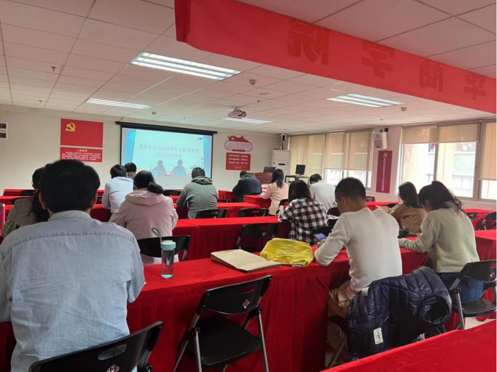 为深入落实部党组教育数字化战略行动要求,积极推动学生资助数字化转型升级,切实提高学生资助战线办公效率与管理水平,努力打造学生资助数字化服务新生态,全国资助管理中心于2022年组织建设了国家学生资助战线办公管理系统(以下简称战线办公系统),为稳步推进系统全国上线运行,全国学生资助管理中心组织开展了战线办公系统应用培训。2023年3月9日上午,学生处副处长黄国富、助学管理科老师以及各二级学院奖助学相关老师在行政楼502参加了此次会议。