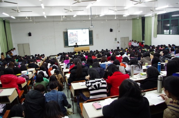 2014年3月6日晚7点,由广东财经大学华商学院学生处主办,校园通讯社承办的一场以“榜样在身边,信心留自己”为主题的讲座于励志楼B栋407课室举行。参加本次讲座的同学大约有350人,场面火爆,同学们以激动的心情等待着讲座的到来。学生处副处长黄国富老师、罗宋老师、付蔚莹老师、李师老师出席了本次讲座。本次讲座由2012-2013学年国家奖学金获得者——11级国贸专业的何丹婷同学以及11级汉语言文学专业的刘浩扬同学担任主讲。