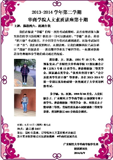挑战四六,超越自我——华商学院第二学期人文素质讲座第十期即将举办