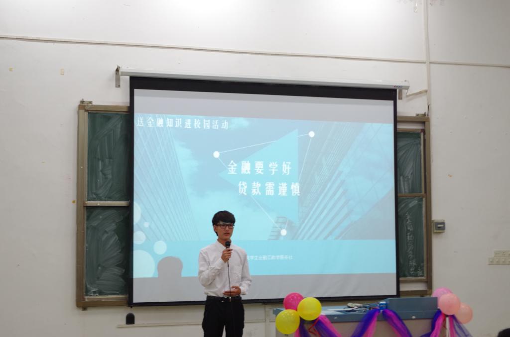 为普及我院广大师生对金融知识的了解,提高师生对金融风险的防范意识,由学生处指导,院学生会勤工助学服务社主办的“送金融知识进校园“知识讲座之“金融要学好,贷款需谨慎”于2016年11月1日晚在励志楼D408顺利举行,本次讲座主讲人为金融协会技术部部长罗译锴同学与以及法学社外联部部长庄炜璇同学。