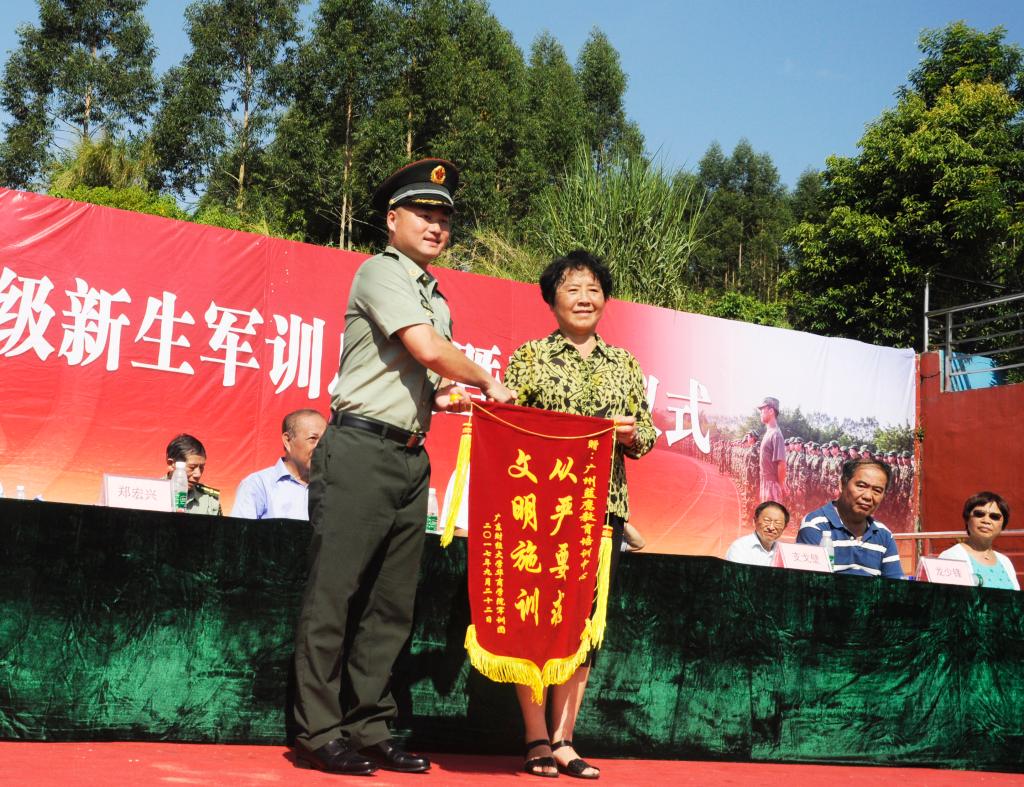 最后,学院支戈壁副院长向承训部队颁赠锦旗。至此,2017级新生军事技能训练又一次安全、圆满完成。