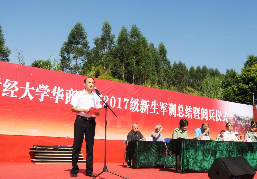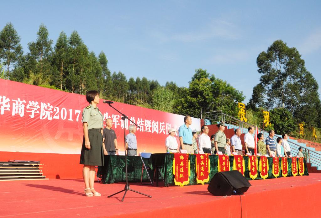 2017年9月22日,广东财经大学华商学院2017级新生军训总结大会暨阅兵仪式在田径场举行。参加本次大会的嘉宾有广东财经大学华商学院院长陈玉川、学院党委书记苏宁、军训团团长郑宏兴、学院副院长支戈壁、副院长郭银华、副院长龙少锋、副院长王列耀、副院长王锦秀、副院长杨丽娟、副院长陈美华,军训团总教官叶计选、军训团领导小组成员以及各二级院系的负责人。本次军训总结大会由王锦秀副院长主持。