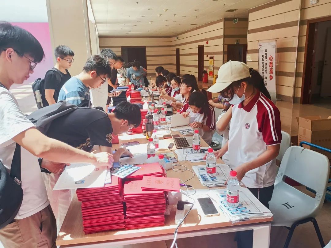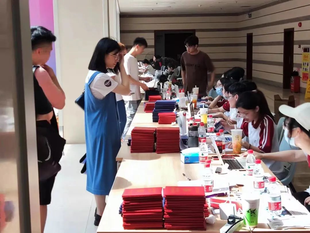 为防止毕业生以及志愿者在办理过程中在夏日下中暑,本届的离校办理手续在图书馆进行。志愿者为毕业生颁发毕业证以及相关证明,全程有序进行,对毕业生的问题在场解惑,在图书馆各个地方都有指示牌与志愿者为毕业生引导,办理手续高效、高质量完成。