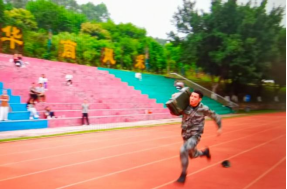 比赛开始前,由在校退伍学生带来标准的队列展示,展现了我校退伍学生过硬的军事素质和饱满的精神风貌。示范组为大家展示了搬运弹药箱、30m蛇形跑、单兵个人战术、战场救护、手榴弹投掷等五个科目,成员们个个精神昂扬、动作利落。