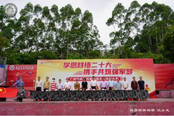为深入贯彻党的二十大精神,推进我校学习贯彻习近平新时代中国特色社会主义思想主题教育持续走向深入,进一步增强广大师生国防观念和爱国意识,5月9日下午,我校在增城校区西操场举办了第四届军事技能大赛,本次大赛以“学思践悟二十大,携手共筑强军梦”为主题。校党委书记苏宁,党委副书记、副校长王锦秀,党委委员、校长助理许娜,党委委员、武装部部长黄国富,党委委员蒋大锐,团委书记陈刚,各学院学工主任、辅导员,以及武装部老师出席了活动。