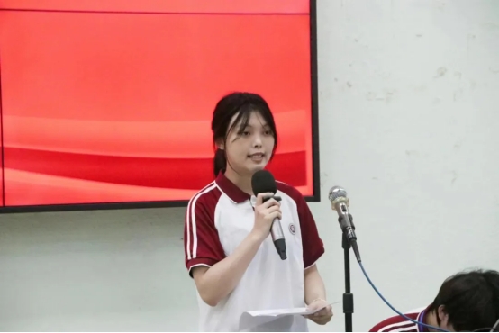 接着,刘佳蓉同学作为先进个人代表发言。她从校园安全教育的重要性、课堂纪律的强化、行为文明的弘扬、自我管理与自我教育、持续的自我提升等五个方面阐述了自己在本次文明安全纪律教育月活动中的收获。她说到教育月虽然即将结束,但我们的学习与成长不应止步。我们要将教育月的精神内化于心,外化于行,继续发扬文明安全纪律的精神,共同创造一个更加美好的校园环境。