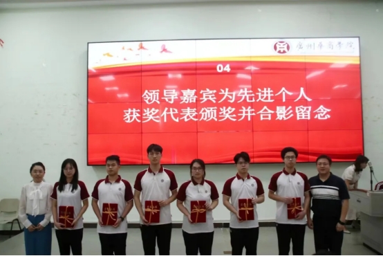 教务处金伟娇处长、团委陈刚书记为先进个人颁奖并合影留念