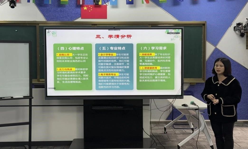 接着,任课教师根据学校磨课要求,对《大学生心理健康教育》课程进行30分钟的课程说课和教学演示。在磨课过程中,大学生心理健康教育的7位任课教师李湘、林婷、裴祖君、李馨怡、刘甜玲、关慧慧和尹娅娟分别进行了精彩纷呈的课堂展示。他们灵活运用丰富多样的教学策略,精心创设引人入胜的教学情境,有效激发了学生们的思维活跃度,充分展示出了教师队伍优良的教学素养与扎实的授课功底。