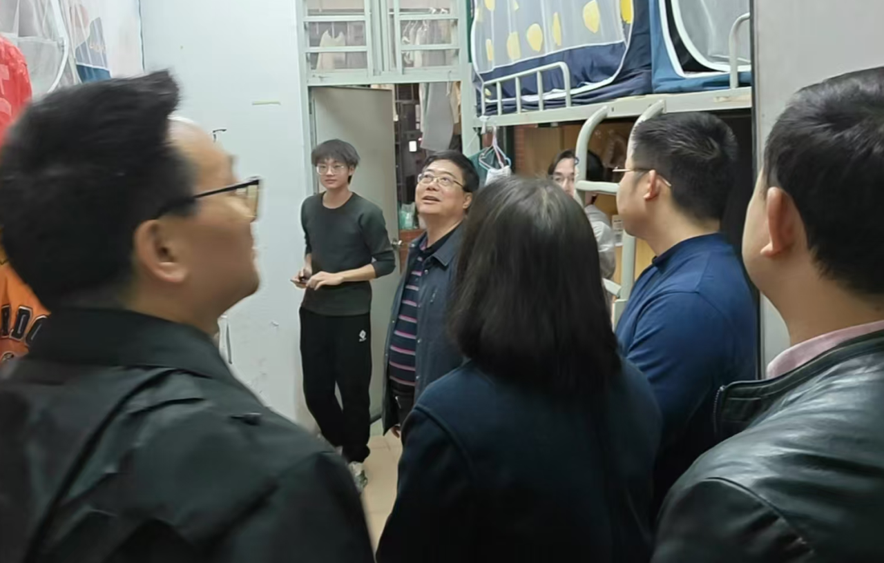 在西十二临时党支部书记的陪同下,领导们逐一走访了多间宿舍,细致观察了宿舍的设施配备、环境卫生以及安全状况。在与同学们的亲切交流中,领导们详细询问了同学们的学习情况、生活习惯以及在学校遇到的困难和问题。
