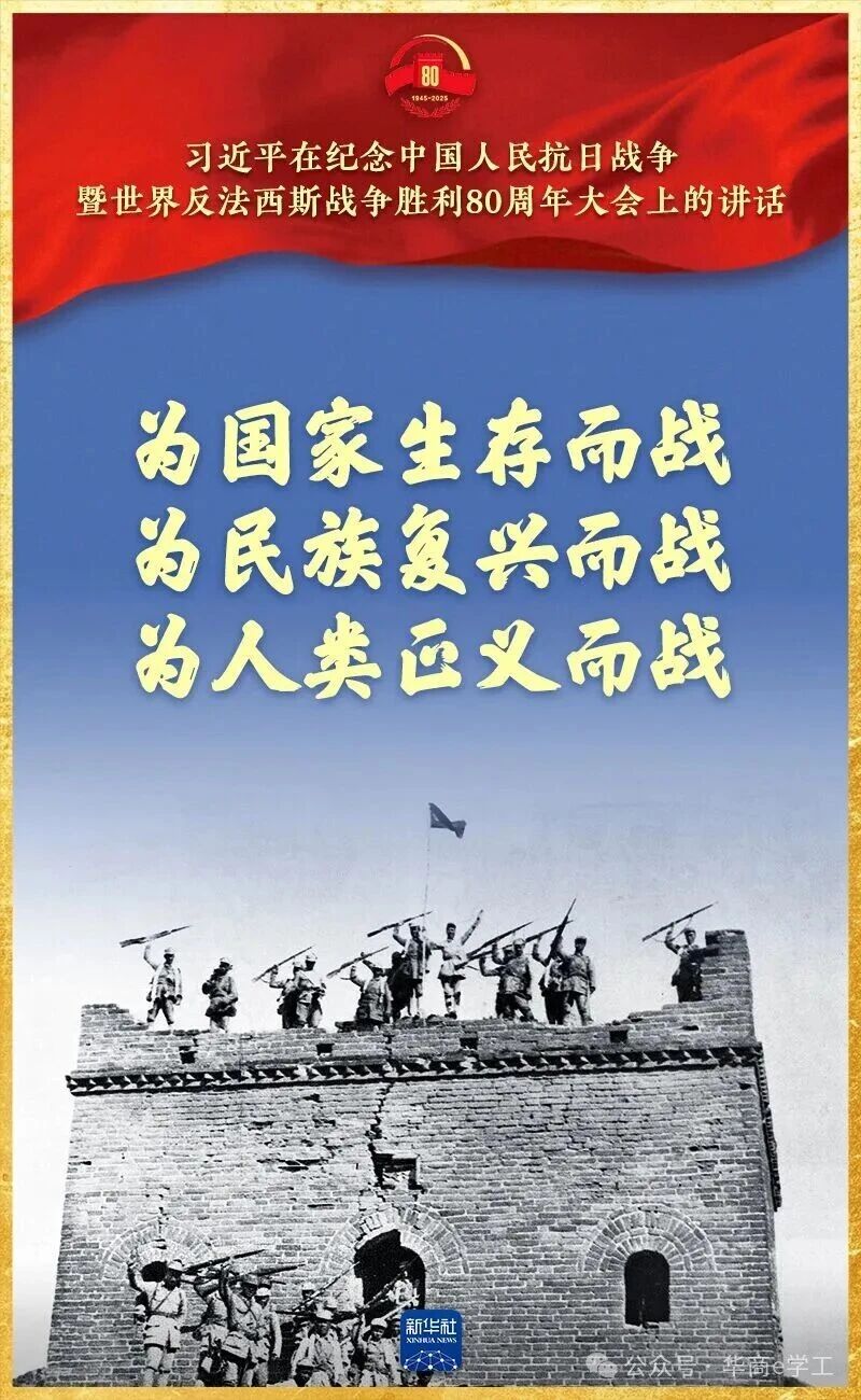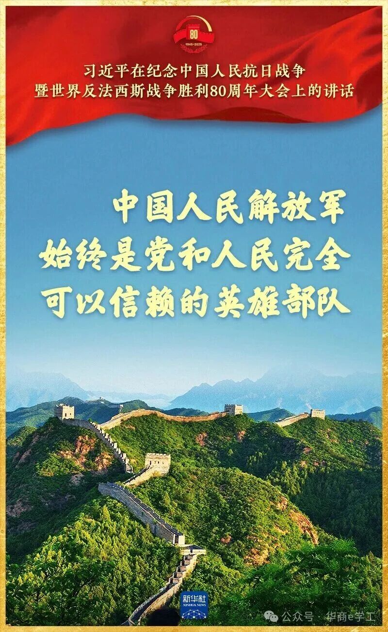纪念中国人民抗日战争暨世界反法西斯战争胜利80周年大会庄严盛大。习近平总书记在纪念大会上的重要讲话更是高瞻远瞩、思想深邃、内涵丰富,深刻阐述了伟大抗战精神的时代内涵与历史意义。华商全体师生员工深受教育、倍感振奋,进一步凝聚了思想共识、增强了行动自觉。全校上下将把学习宣传贯彻习近平总书记重要讲话精神作为重大政治任务,全面把握核心要义与实践要求,自觉在思想上政治上行动上同以习近平同志为核心的党中央保持高度一致,深刻领悟“两个确立”的决定性意义,坚决做到“两个维护”,坚定不移将重要讲话精神转化为落实立德树人根本任务,大力弘扬伟大抗战精神,赓续教育报国红色血脉。
