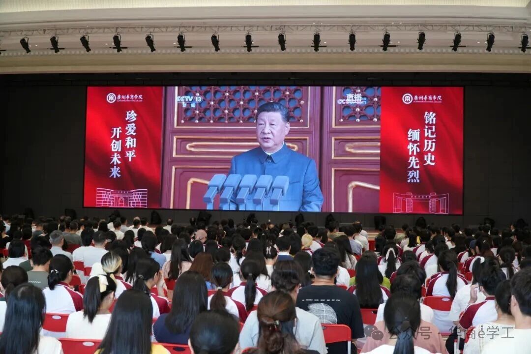 我校高度重视此次重要纪念活动,提前部署,精心组织,通过集中观看和自行观看相结合的形式,设立华商国际会议中心大礼堂等五个会场,实现万人齐看的壮观场面,为广大师生上了一堂生动而深刻的“开学第一课”。共同回顾那段艰苦卓绝、波澜壮阔的光辉岁月,深刻缅怀革命先烈,感悟伟大抗战精神。