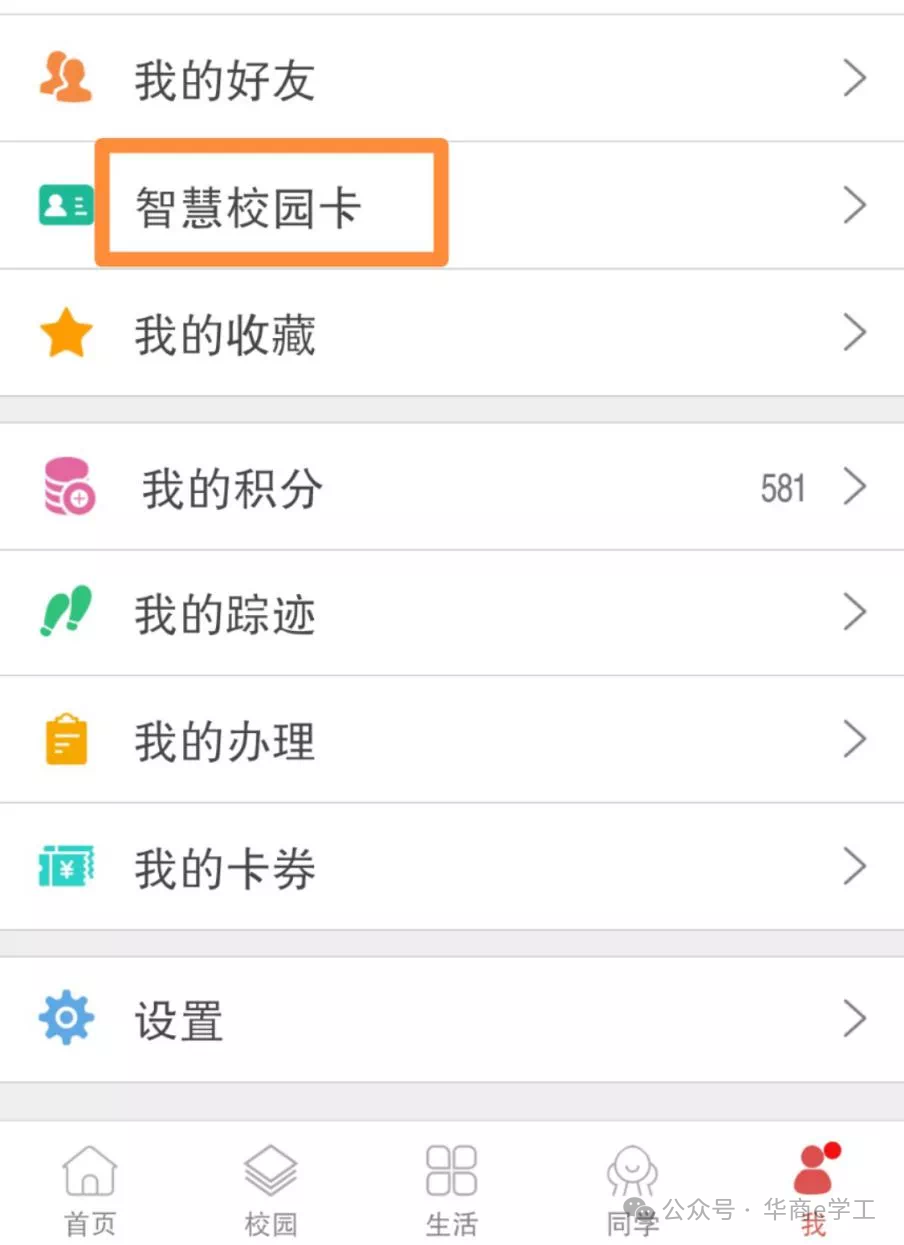 2、点击“智慧校园卡”