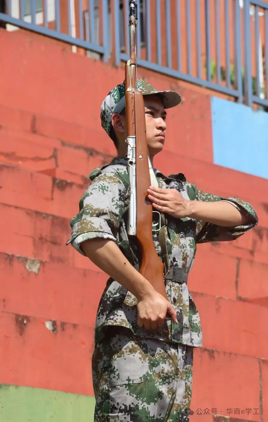 当挺拔军姿扛起训练枪