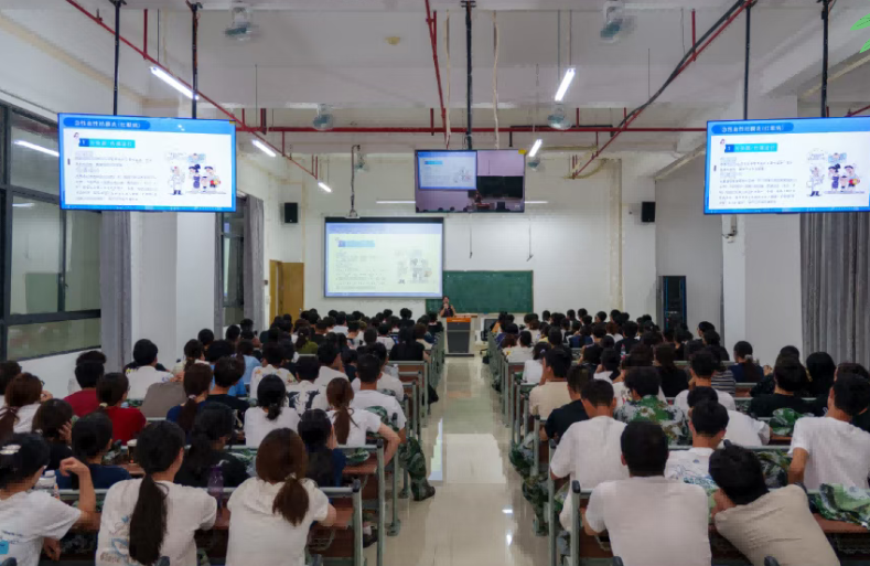 心理健康教育专题:学校特邀广东工业大学心理健康教育中心专职教师姜小日、吴洁老师担任主讲。两位老师从专业的视角将复杂的心理学知识娓娓道来。大学新生普遍面临生活、人际与学习等多方面的“不适应”,指明这既是挑战,也是成长的契机。讲座中,老师提出了“情绪是信使,而非敌人”的核心观点,引导同学们学会倾听焦虑、迷茫等负面情绪背后所传递的内心需求信号,而非一味地抗拒或压抑。