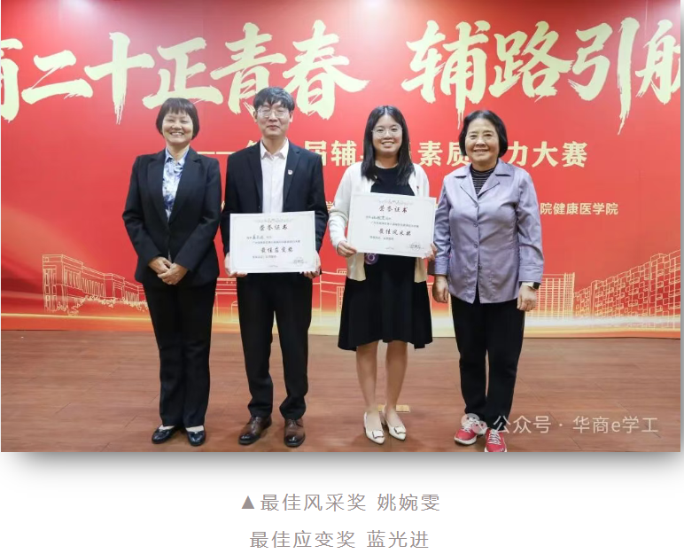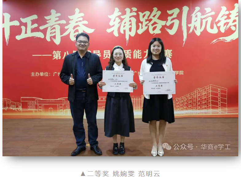 为深入学习贯彻习近平新时代中国特色社会主义思想和党的二十大精神,进一步加强辅导员队伍建设,提升辅导员理论水平、职业能力与专业素养,推动学校学生工作高质量发展,2025年12月18日,由我校学生处主办、健康医学院承办的广州华商学院第八届辅导员素质能力大赛在广州校区图书馆报告厅隆重举行。广东技术师范大学教育科学学院党委副书记罗雄、广州华商学院副校长许娜出席活动。