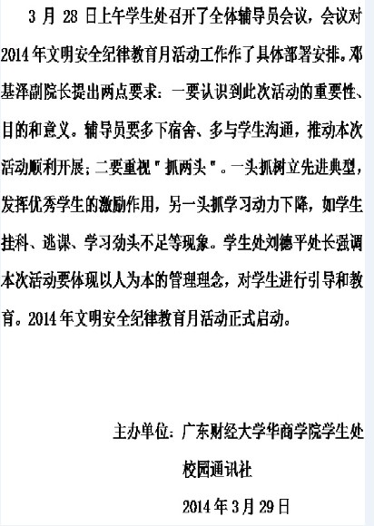 2014年广东财经大学华商学院文明安全纪律教育月活动正式启动