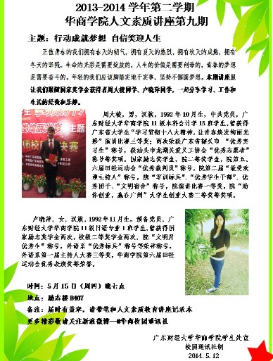 坚强造就成功,奋斗成就梦想--华商学院第二学期人文素质讲座第七期即将举办