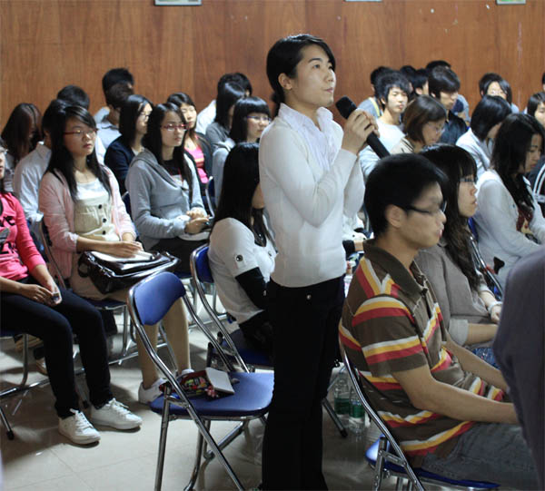 最后,在邓副院长的促发下学生班长们开始对平时学习与工作遇到的种种问题踊跃发言。08本行政管理、08本日语、08本汉语言文学、06本会计6班、07专旅游英语等专业班的班长们都热情地作了发言,发言中提到了在学校硬件设施和教材等方面学生们遇到的问题。领导老师们就具体问题做了解答,同时表示:班长们代表的是各班学生,所反映的问题都非常重要,若当场不能解答会反映到相关部门去解决学生们所遇到的问题。