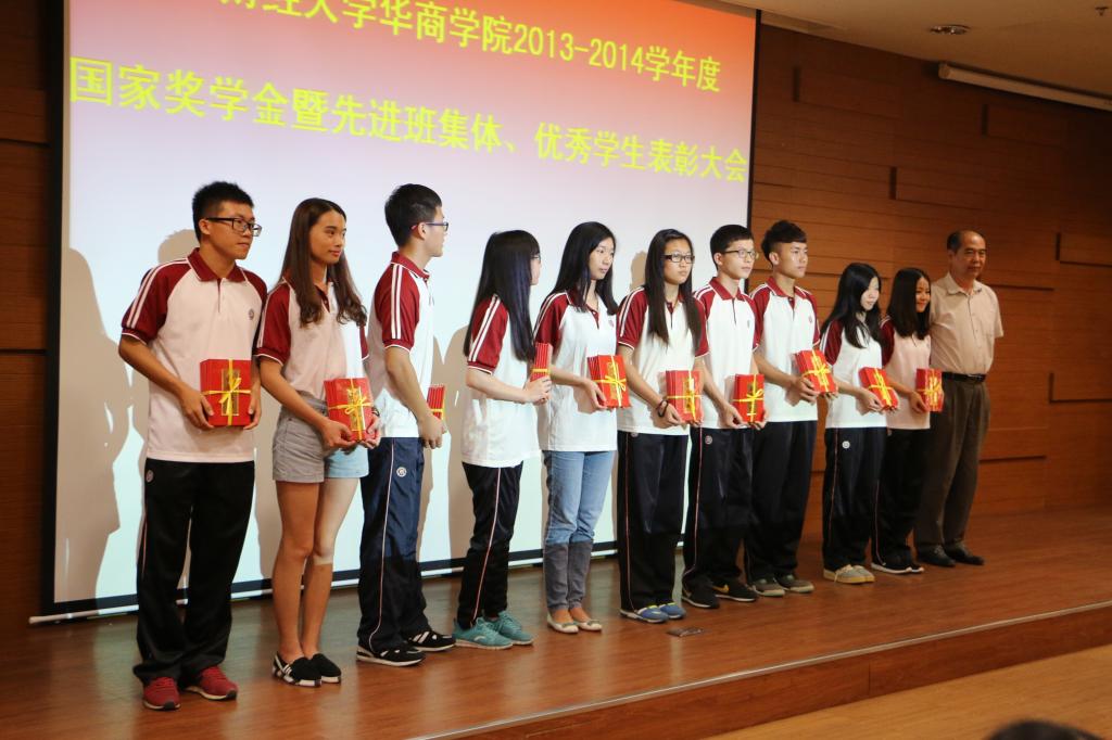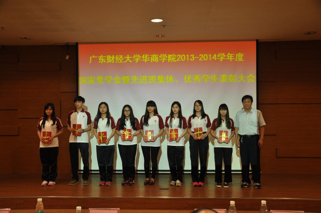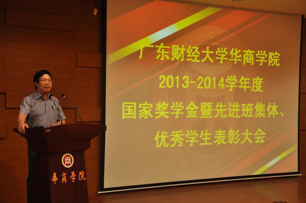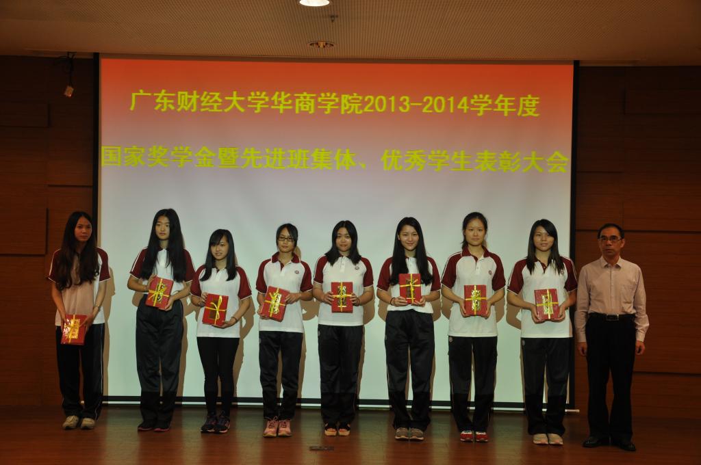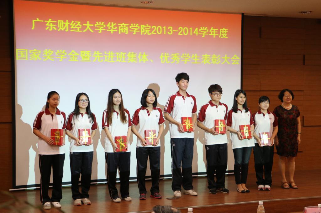 2015年6月16日下午,广东财经大学华商学院2013-2014学年度国家奖学金暨先进班集体、优秀学生表彰大会在图书馆报告厅举行。院党委书记苏宁、副院长邓基泽、支戈壁、王中德、郭银华、马玉珍、龙少锋及相关处室负责人、二级学院/各系负责人和200余名获奖学生代表出席了大会。大会由学生处刘德平处长主持。