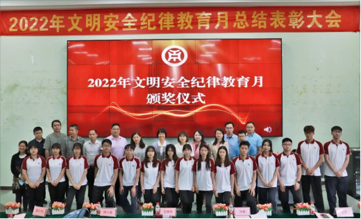 黄国富副处长宣读《关于表彰2022年文明安全纪律教育月活动先进集体和先进个人的决定》,并向本次得奖的先进个人和先进集体表示诚挚的祝贺。希望他们戒骄戒躁继续为创建美好和谐校园环境起到带头模范作用。