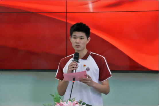 张增镇同学作为先进个人代表发言。他表示同学们都在本次文明安全纪律教育月活动中提高自身素质并分享他在本次教育月中获得的感悟,呼吁全校师生严加控管,人人参与,共同营造文明、安全、和谐、有序的校园环境。