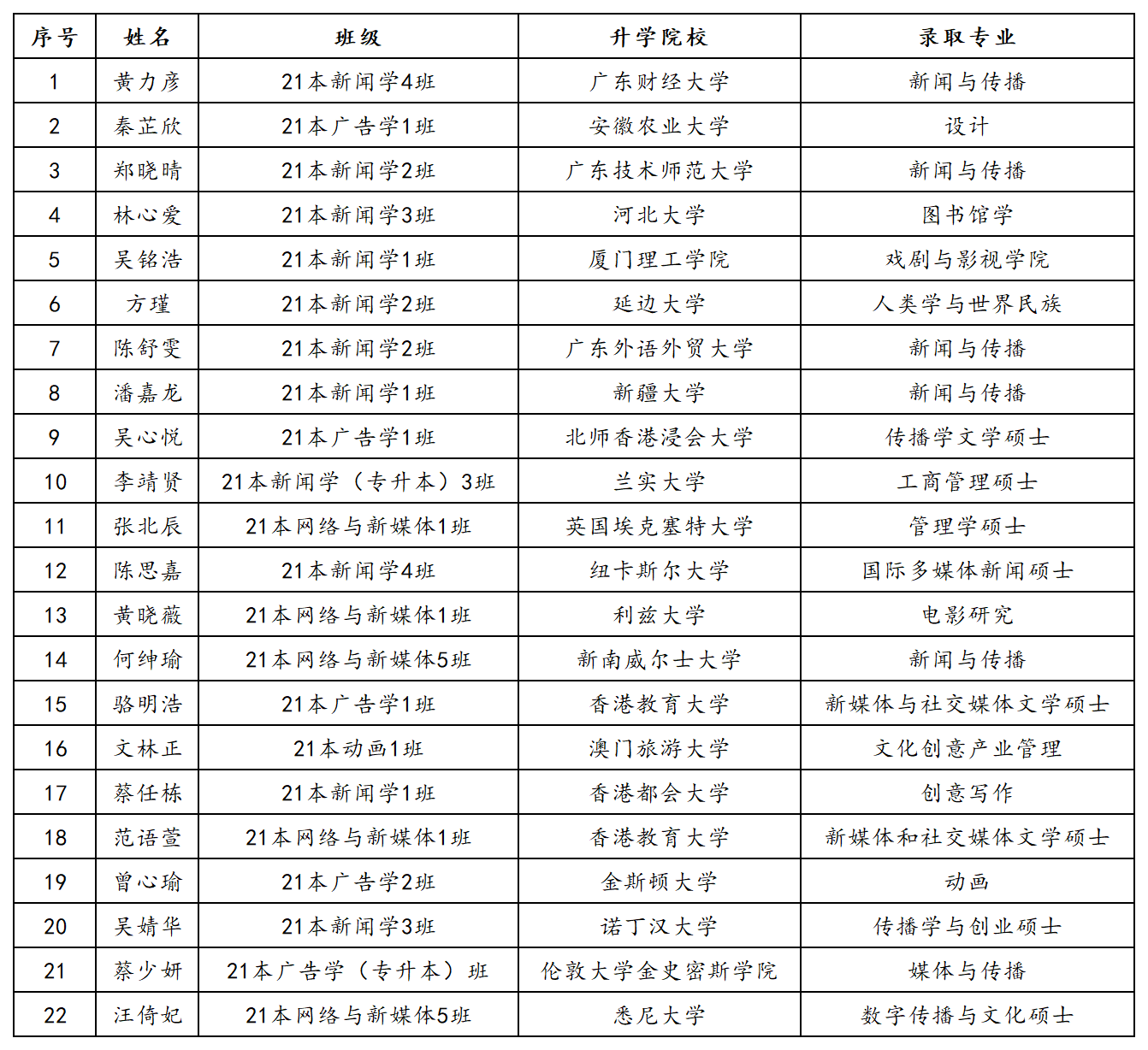 研途砺剑终折桂,学海扬帆再启程。四年考研梦,一朝捷报传!随着2025年全国硕士研究生复试结果陆续公布,以及境外高校录取结果逐步揭晓,传院学子考研录取喜报频传,截止目前,共有22名同学分别被新疆大学、延边大学、广东外语外贸大学、香港浸会大学、悉尼大学、诺丁汉大学等境内外知名高校录取。